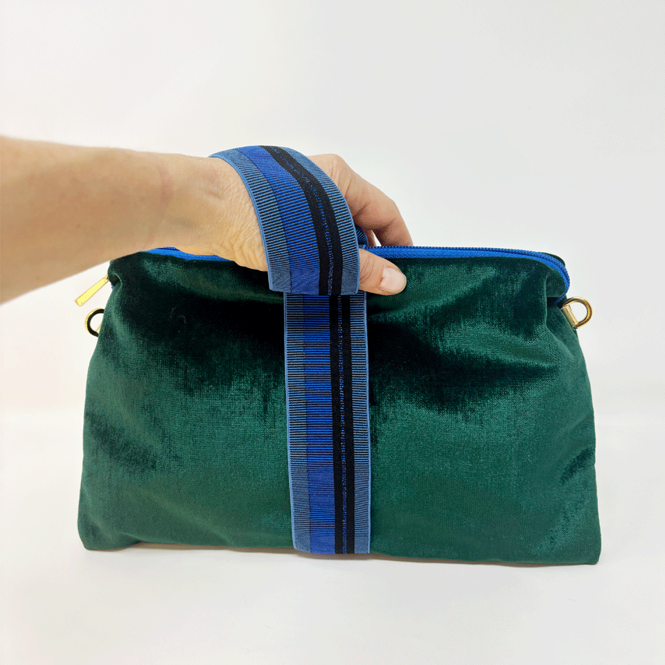 La Clutch Layoyo velvet green bottle è una pochette in edizione limitata realizzata con un velluto recuperato dal magazzino Labolsina. Caratteristiche principali Edizione limitata  Indossabile al polso grazie all'inserto di banda elastica che permette di portarla comodamente al polso. Fodera blu con tasca interna per organizzare piccoli oggetti in modo ordinato. Catena in oro lunga 69 cm per un look sofisticato e una portabilità sicura. Dimensione unica 30x17 cm, perfetta per trucchi essenziali, telefono e documenti. Chiusura con zip per mantenere al sicuro i contenuti.