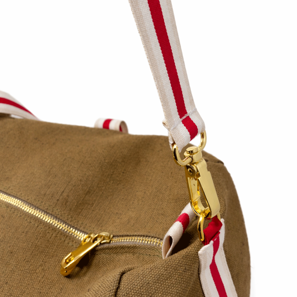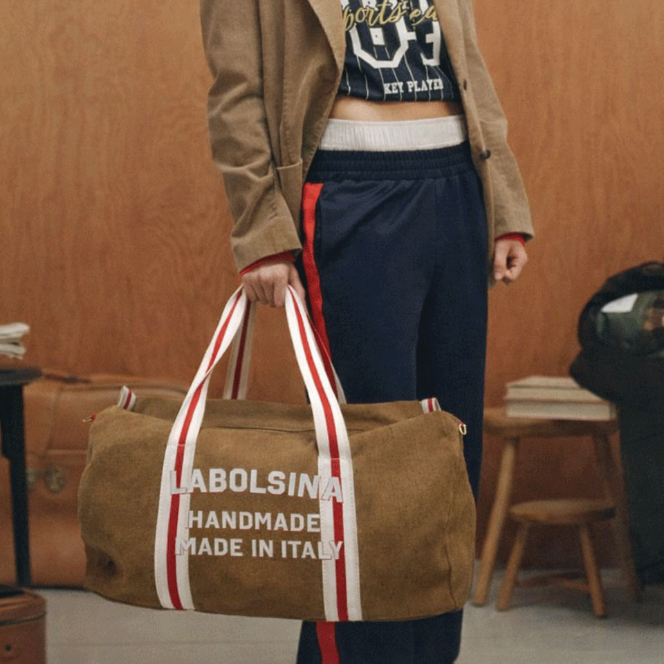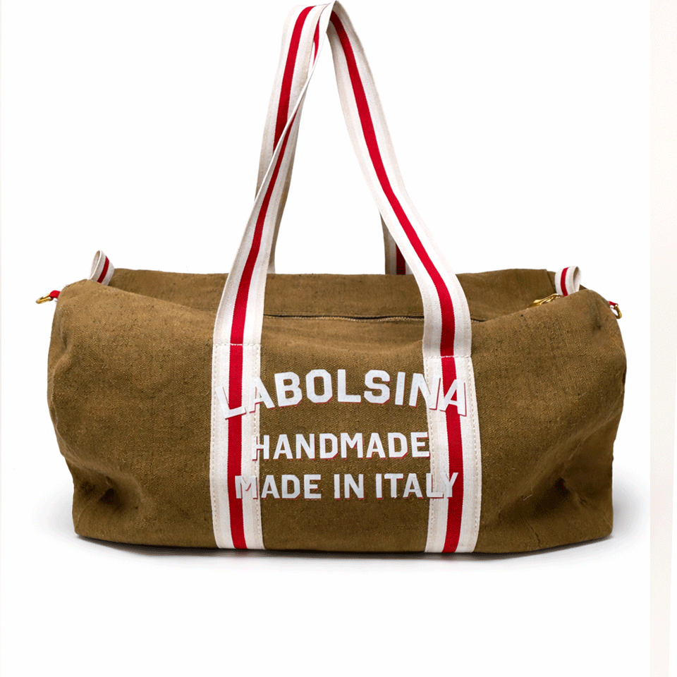 Labaulè in versione basic realizzata in tessuto canvas stampato, ideale per andare in palestra o in vacanza. Sfoderata è provvista di una pratica tracolla, Minuteria metallica colore oro misura shopper: 45 x 25 x 25  cm